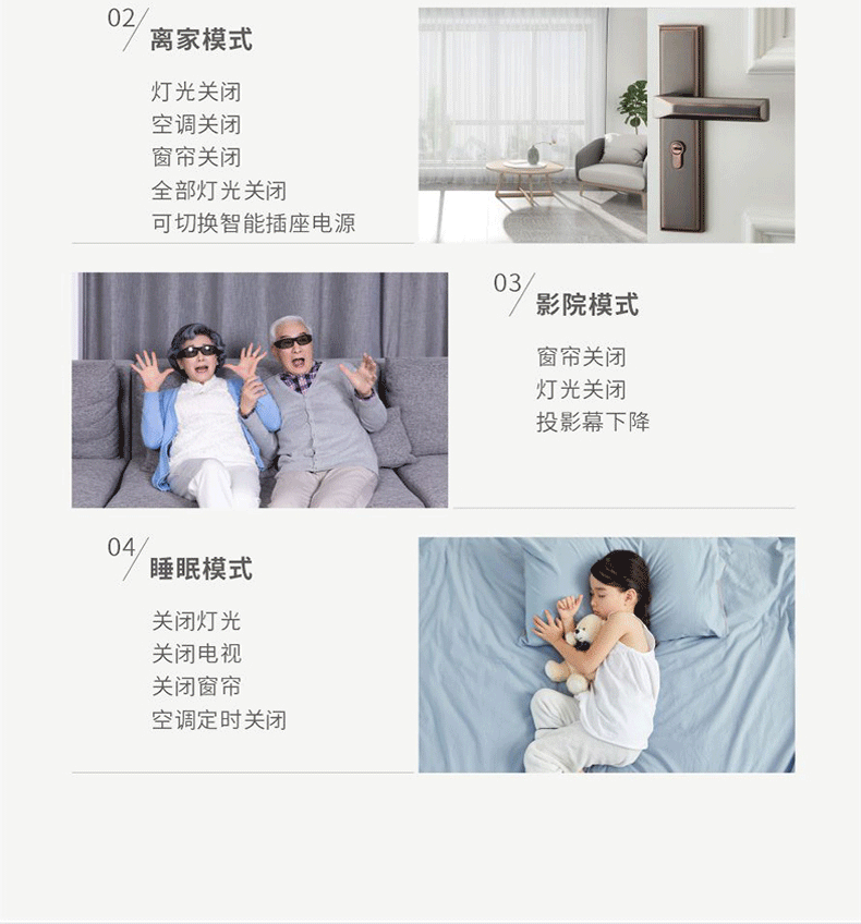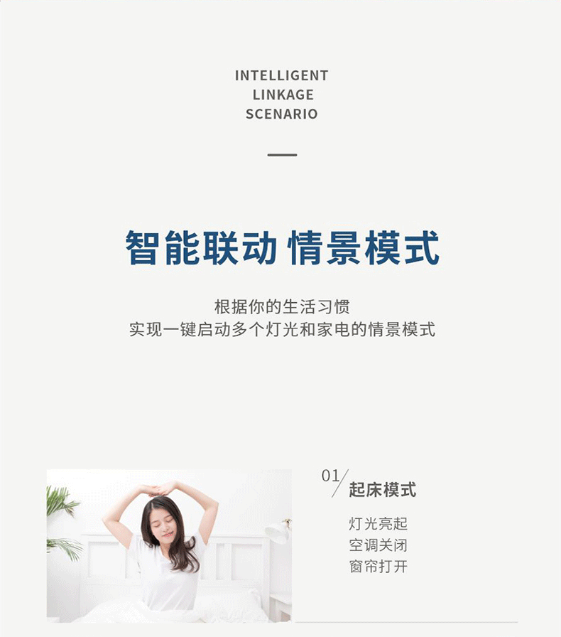 相較設(shè)備繁多的全宅智能系統(tǒng)而言,輕智能語(yǔ)音家居系統(tǒng)擇選最實(shí)用、使用頻率非常高的產(chǎn)品,如智能開關(guān),智能插座,空調(diào)、電視、風(fēng)扇、電動(dòng)窗簾,電動(dòng)晾衣架,情景照明等,這些幾乎天天都要使用的設(shè)備,且價(jià)格親民,在市場(chǎng)上易于推廣,學(xué)習(xí)簡(jiǎn)單,易上手操作,只需要看說明書就可以學(xué)會(huì)設(shè)備對(duì)接,輕松設(shè)置區(qū)域設(shè)備;平時(shí)使用語(yǔ)音控制加無線控;添加語(yǔ)音主機(jī)后可使用小程序設(shè)置更復(fù)雜情景模式,控制全屋設(shè)備,一鍵體驗(yàn)智能家居產(chǎn)品帶來的生活便捷和舒適體驗(yàn)感。