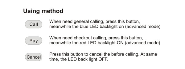 無(wú)線呼叫按鈕采用最新的射頻技術(shù),聲表面波諧振器振蕩技術(shù),使產(chǎn)品穩(wěn)定,性能高,與其他產(chǎn)品相比,受溫度變化的影響很小,并具有低功耗指示和防濺功能。如果將產(chǎn)品倒在表面上,只需將變送器翻轉(zhuǎn)過(guò)來(lái),倒出水并干燥。這不會(huì)影響變送器的使用。無(wú)線呼叫系統(tǒng)是一種提供呼叫服務(wù)的電子產(chǎn)品。它使用包括軟件和硬件的最新射頻技術(shù)。無(wú)需布線,廣泛用于餐廳,咖啡廳,酒吧,KTV,會(huì)所,商店,醫(yī)院等。