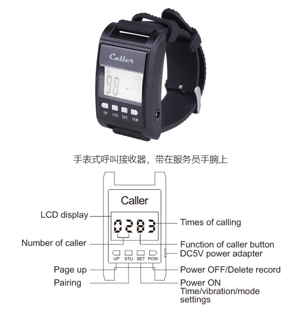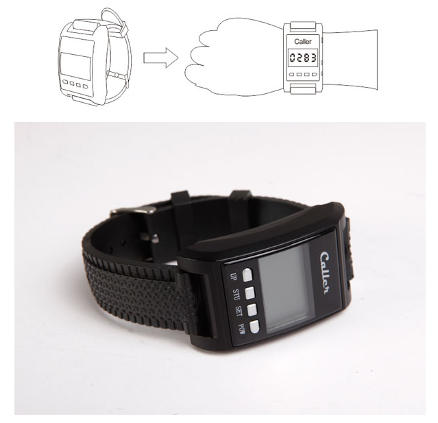 手表呼叫接收器,該產(chǎn)品集中了無線運(yùn)輸,數(shù)字識(shí)別,LCD顯示和微處理器的技術(shù)。該系統(tǒng)使用包含數(shù)百萬個(gè)學(xué)習(xí)代碼的芯片組,使產(chǎn)品非常安全和穩(wěn)定,并且避免了錯(cuò)誤的調(diào)用和錯(cuò)誤的顯示。最多可以配對(duì)99個(gè)不同的呼叫發(fā)送器。